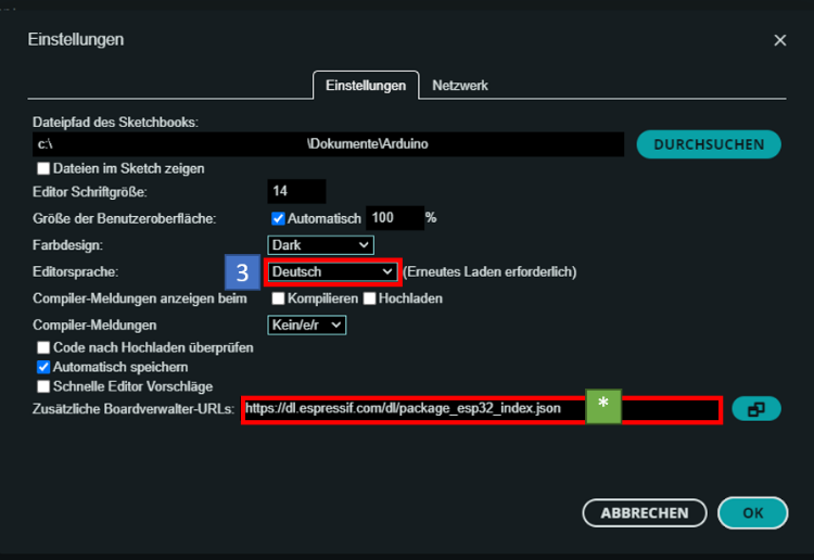 SPRACHEINSTELLUNG IN ARDUINO IDE