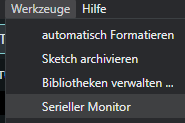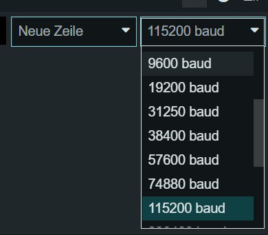 Unter Werkzeuge > Serieller Monitor können Sie beim Benutzen des Gerätes nützliche Infos auslesen. Bei Ersteinrichtung müssen Sie außerdem eine sogenannte Baudrate angeben, wählen Sie im Dropdownmenü hier die Option 115200 baud. Starten Sie nun ihren Mikrocontroller per Knopf auf der Rückseite neu.